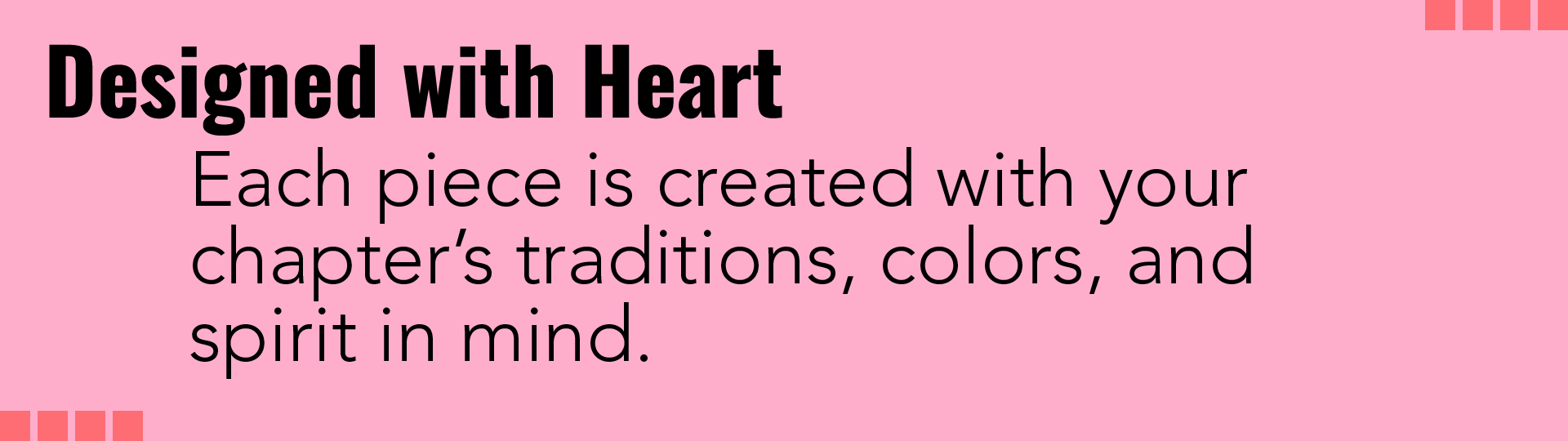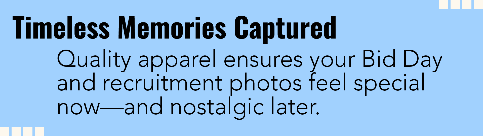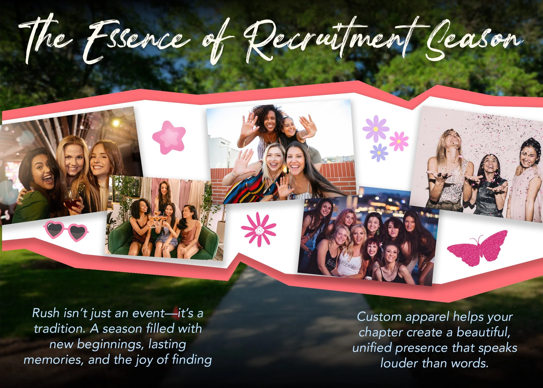 We make it easy to design and order apparel that reflects your chapter’s identity and makes your Recruitment season unforgettable.